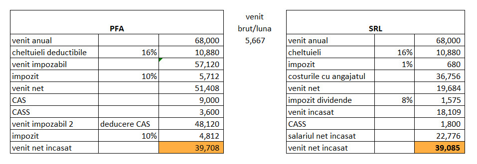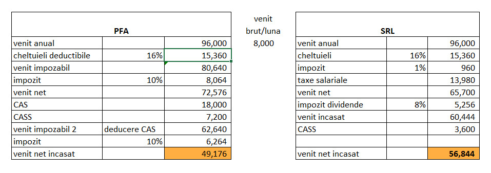 Decizia de a alege intre PFA si SRL este una care are un impact major asupra veniturilor nete incasate.